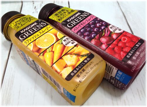 今年4月にリニューアルした、カゴメのプレミアムなスムージー『GREENS』の残りの2種類、「ベリーアサイースムージー」と「リフレッシュスムージー」を飲んでみました!